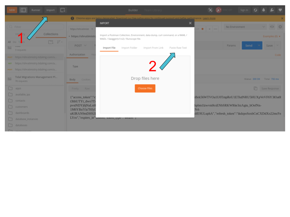 Import a Postman Collection, and select ‘Paste Raw Text’